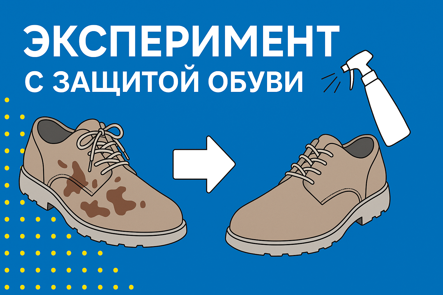 Чтобы показать эффективность средств, был проведён эксперимент: один ботинок обработали защитным составом, другой оставили без обработки. Результат оказался очевидным — обработанная обувь осталась чистой, а влага и грязь буквально скатывались с поверхности, не оставляя следов. Это и есть действие нанопокрытия: оно создаёт воздухопроницаемый барьер, защищающий материал от влаги и загрязнений.