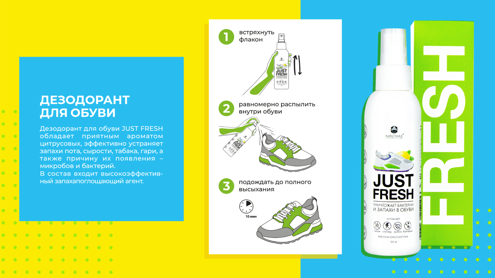Итог: с JUST FRESH неприятный запах больше не станет проблемой. Ваша обувь будет свежей и комфортной, а вы — уверенными в любых обстоятельствах.